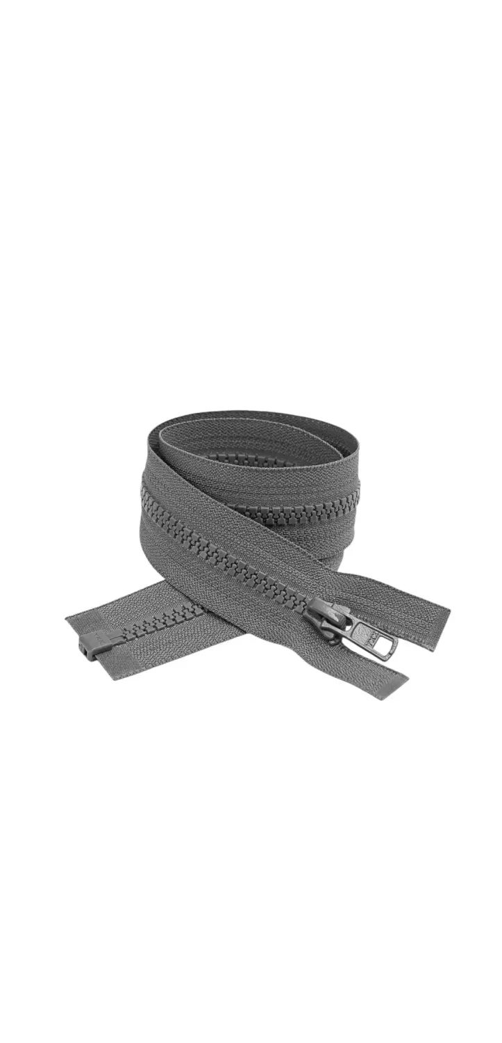 Vattentät YKK-dragkedja 6 mm, delbar och vändbar/dubbelsidig i mörkgrått. Längder 30–120 cm i steg om 5 cm. Perfekt för jackor, kapell och väskor.