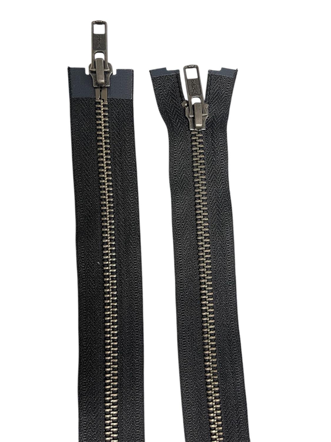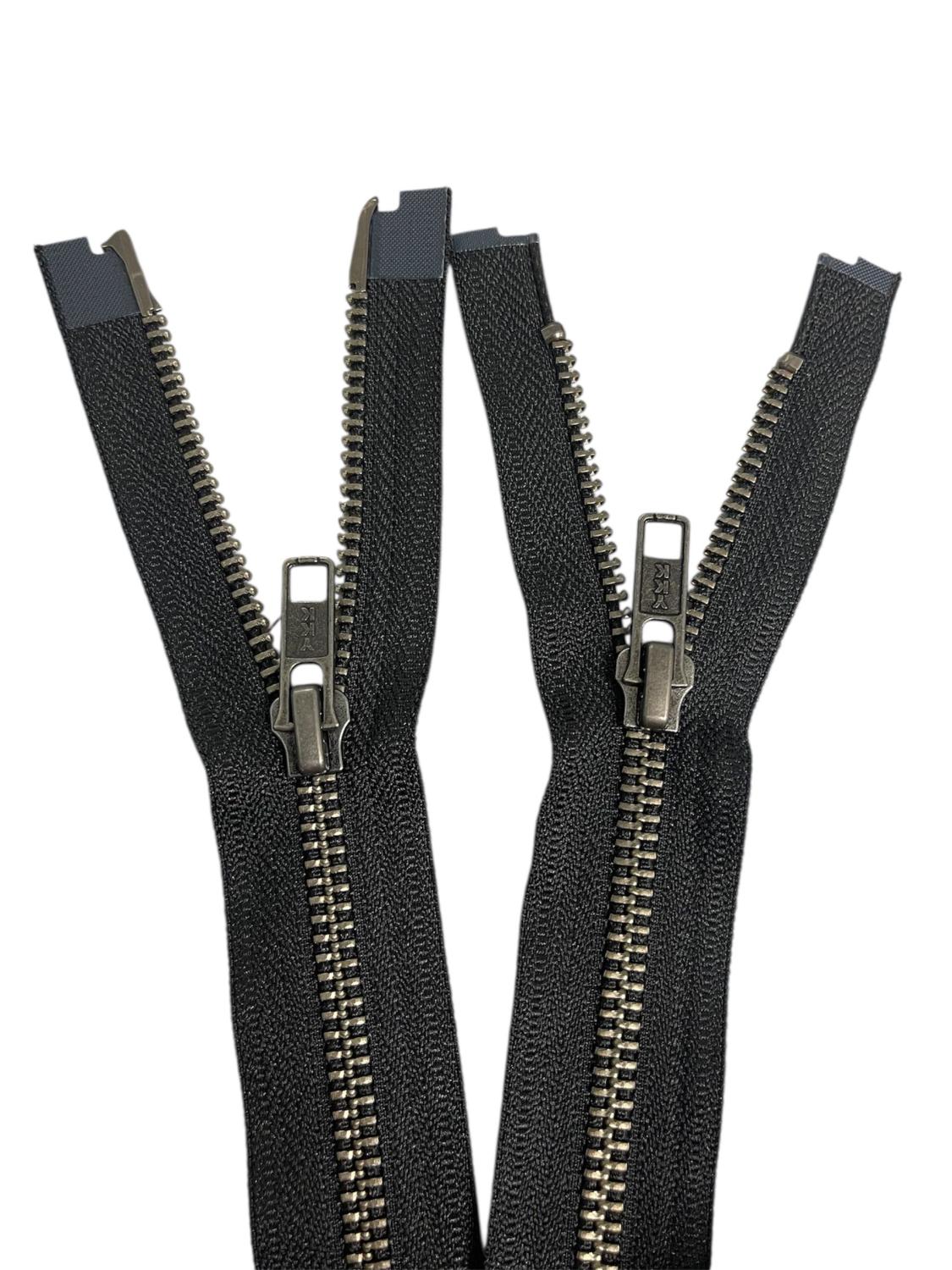 Robust YKK 6mm metallblixtlås i antiksilver. 2-vägs delbar funktion för jackor & väskor.