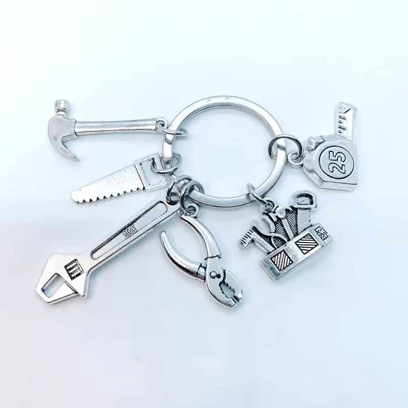 Nyckelring i metall med miniatyrsåg, skruvmejsel och skiftnyckel – en rolig och dekorativ gåva till alla som gillar verktyg. Perfekt till Fars dag, födelsedag eller som en liten uppskattning.