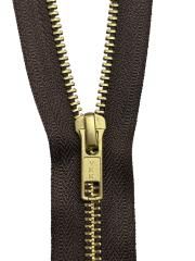 Skapa en lyxig och klassisk finish med Original YKK metallblixtlås. Detta är ett extra kraftigt blixtlås på metervara, perfekt för exklusiva väskor, stövlar, ridstövlar och inredningsdetaljer. Kedjan har en bredd på 6mm med vackra, polerade tänder i guld monterade på ett slitstarkt brunt textilband.